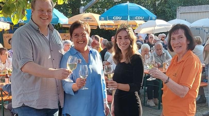 Bereits vor Beginn um 17 Uhr hatten sich die ersten Besucher eingefunden, bevor dann die Rheingauer Gebietsweinkönigin Katja Föhr gemeinsam mit der stellvertretenden CDU/CSU-Fraktionsvorsitzenden und heimischen Bundestagsabgeordneten Patricia Lips, Bürgermeister Max Breitenbach und der CDU-Vorsitzenden Sabine Kretschmer die offizielle Eröffnung des Weinfestes vornahm.